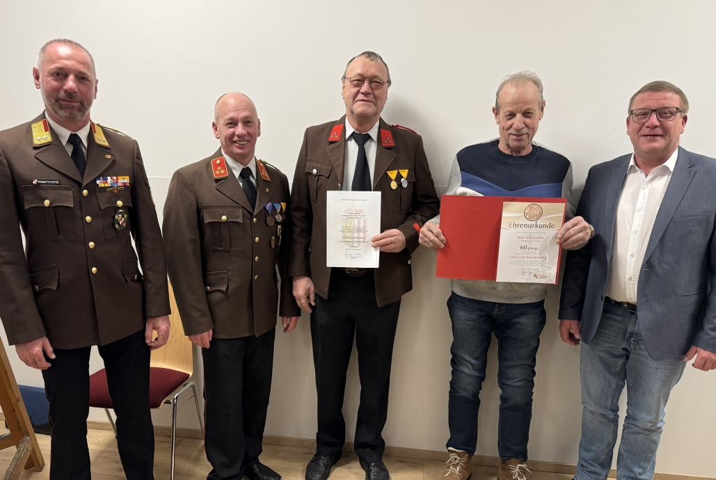 Karl Affenzeller erhielt die Ehrenurkunde für seine 60-jährige Mitgliedschaft, Josef Jachs wurde mit der 50-jährigen Verdienstmedaille ausgezeichnet.