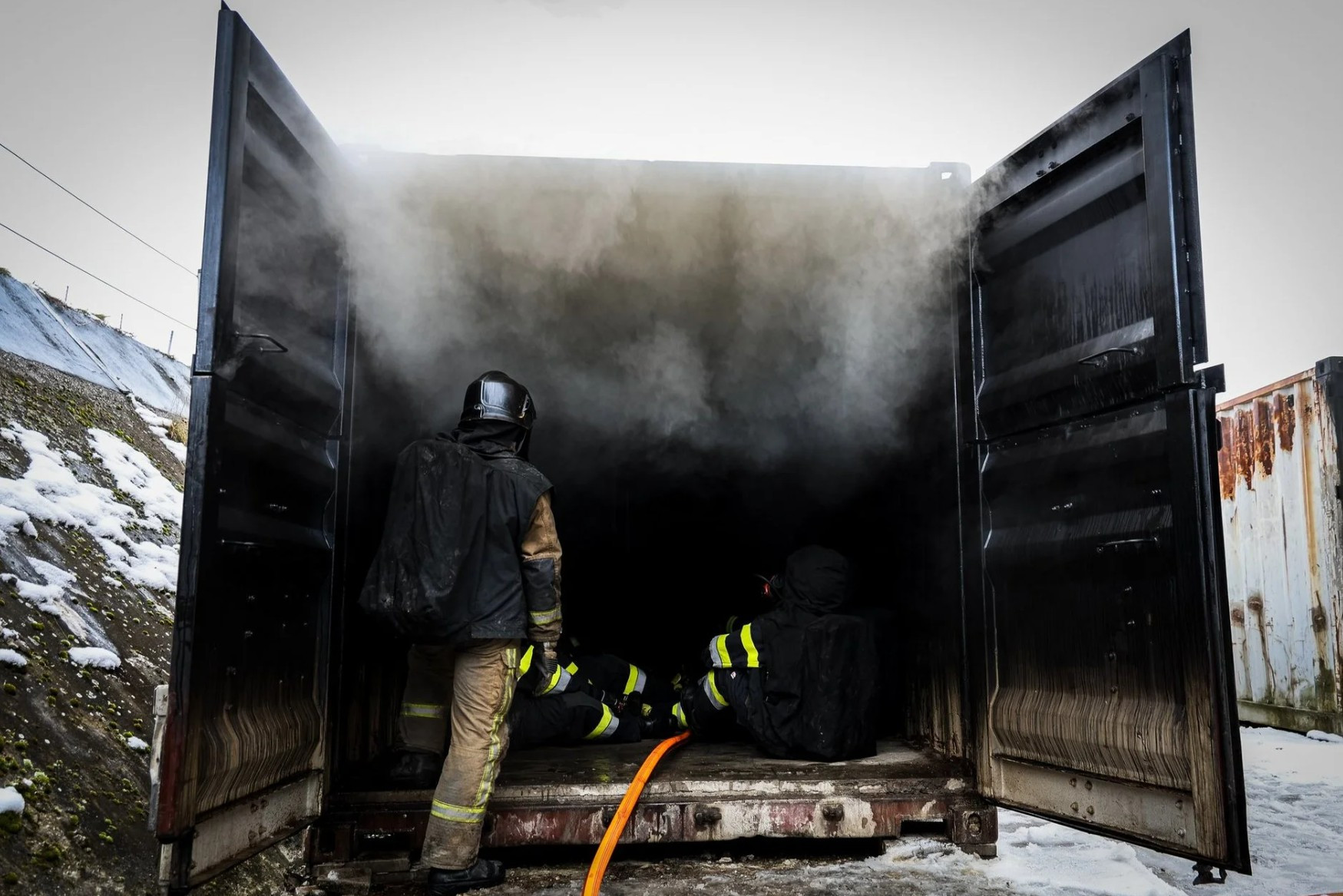 Solche Übungen sind wichtig und notwendig, um unter realitätsnahen Bedingungen zu trainieren. Im befeuerten Container können Einsatzsituationen gut simuliert werden. Da die Hitze kaum entweichen kann, entstehen enorme Temperaturen – man hat tatsächlich das Gefühl, in einem Backofen zu sitzen.